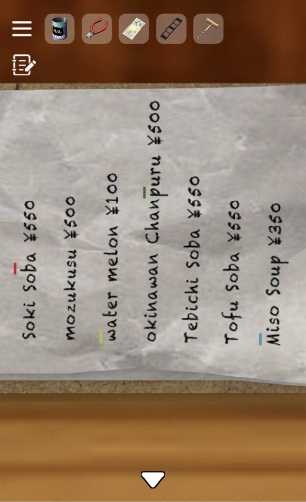 ①ご飯屋にあるメニュー表に色がついている文字がある、この時向きに注意