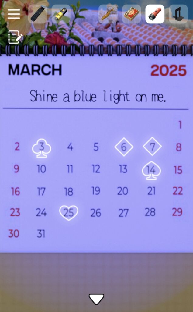 カレンダーに書いてある通り、ライトで照らすと画像のようにマークに囲まれた数字が表れる