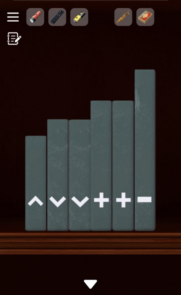 ①散らばっている本を“ブックスタンド”(キッチン中段の棚の謎解きより入手)で並べる